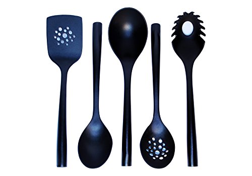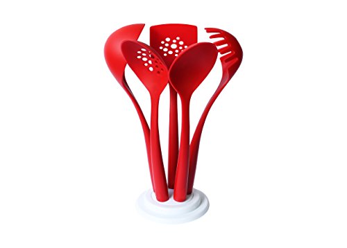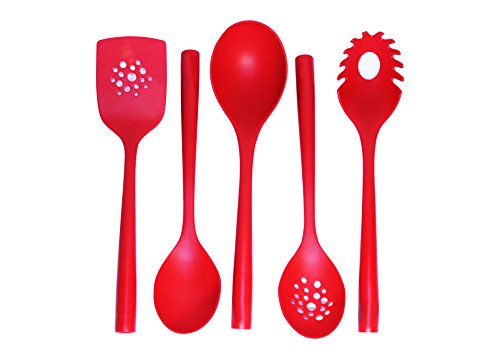 -. Title : Magic Cuisine Nylon 5pc with Stand Kitchen Utensils Set - Home Cooking Tool - Soup Ladel - Slotted Turner - Spoon - Slotted Spoon - Spaghetti Server Kitchen Accessories