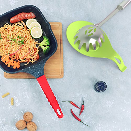 Colorful bright and fun spoon rests are large enough to hold all size of spoons, forks, ladles, baking and kitchen cooking utensils or even multiple utensils at a time. A great helper for your kitchen.