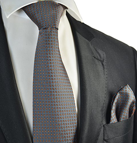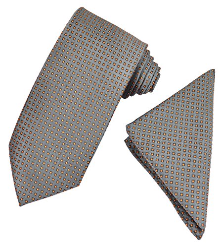 (Paul Malone)/Accessories/Ties/DIRECT FROM USA/Grey and Orange Dotted Men's Tie and Pocket Square Set