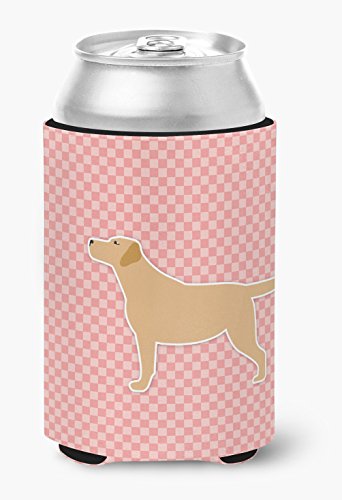 Caroline's Treasures Yellow Labrador Retriever Checkerboard Pink Can or Bottle Hugger BB3597CC, Can Hugger, Multicolor
