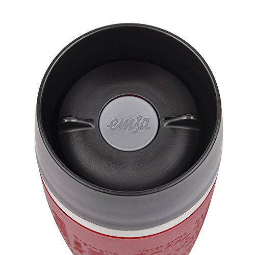 If you are looking for a high quality, clever engineered, and truly great vacuum mug, look no more! This German Engineered Emsa Travel Mug keeps your drinks hot for a minimum of 6 hours and even longer for cold drinks at 12 hours. Most popular Vacuum Mug on Amazon Germany with over 5000 reviews and awarded with a solid 5 Star rating. The mug opens with a press of a button, the patented mechanism is super easy to use, and seals 100%. You can drink from all sides, so no more reason to rotate the mug to find the opening. The mechanism is easy to take apart and all components are dishwasher safe. The Emsa Travel Mug is the sole winner and the only vacuum mug rated as “Excellent” by the German consumer Öko-Test magazine devoted to consumer protection and ecology. It also beat out its competitors in various comparisons tests. The core of the mug is made out of high quality 18/10 stainless steel and the sleeve out of food graded silicon. With a capacity of 500 milliliters or 0.53 quarts, it is the perfect size for your Grande Latte at your favorite coffee shop. REDUCE, REUSE, REFILL – Reduce your environmental impact on the way to work, at the next meeting or while shopping – the tradition of enjoying a coffee from a paper cup on the go is more popular than ever. However, the average lifetime of a paper coffee cup and its plastic lid is only 15 minutes! This quick coffee fix leaves a bitter aftertaste when it comes to the environment; the short useful life of disposable cups means mass production on a huge scale, and this in turn harms the environment big time. Produced by EMSA, an innovative German producer with nearly 70 years of history in producing quality goods. For EMSA, sustainability is one of their core values as demonstrated in their entire value chain – starting with the use of quality raw materials, and the deployment of energy-efficient production facilities, to the very strictest quality controlsFeature