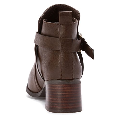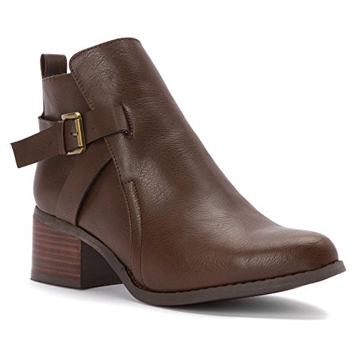 Simple and classic, the Nahira ankle boot by Mia is this season's must-have. The sleek faux-leather upper and stacked-look heel combine for a stylishly versatile look.