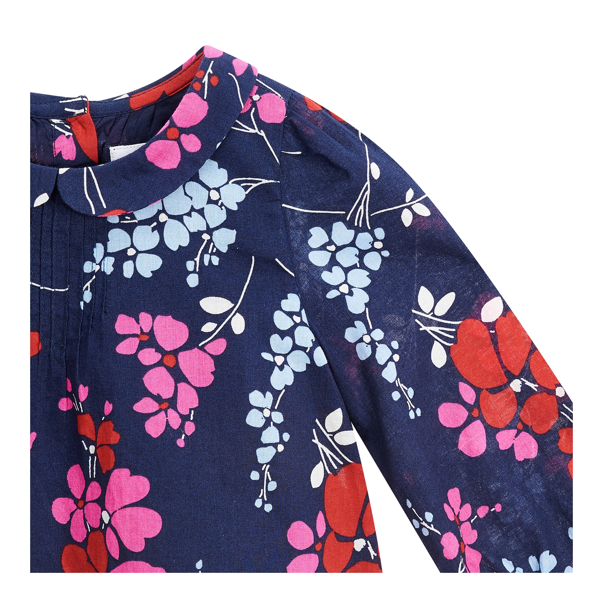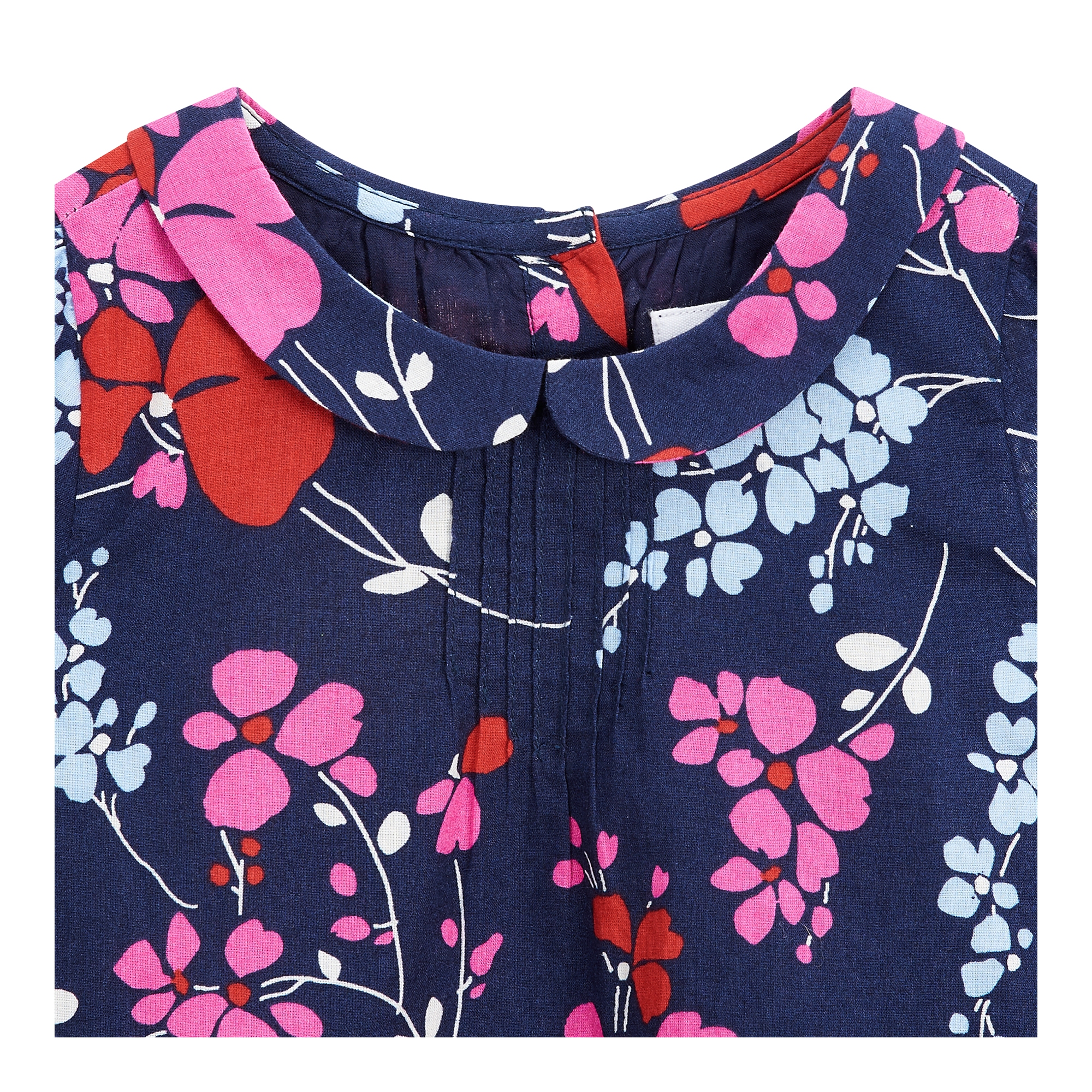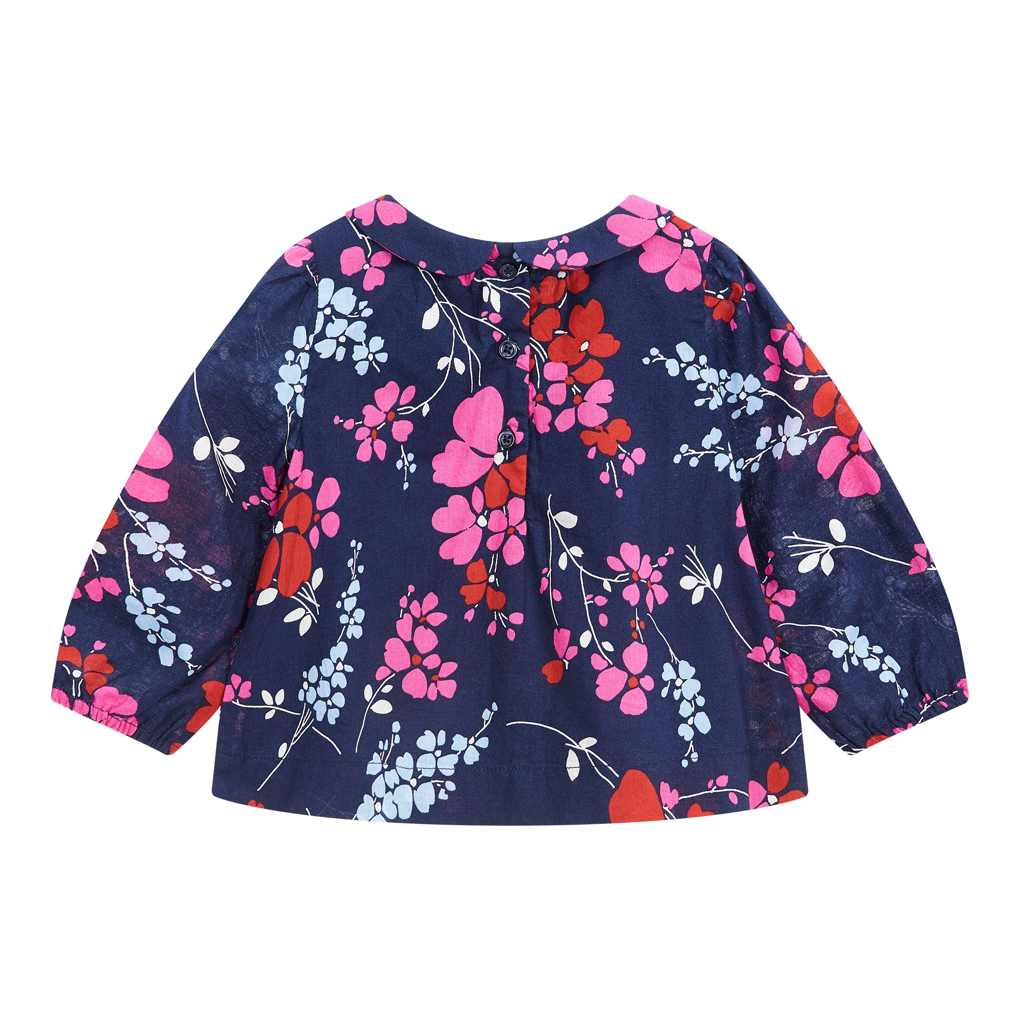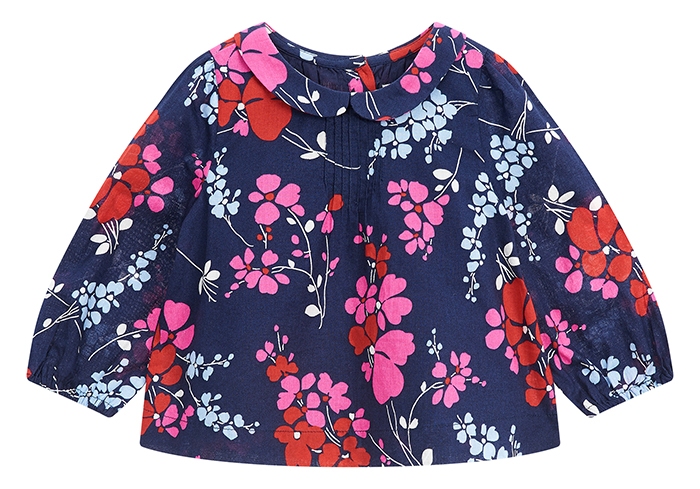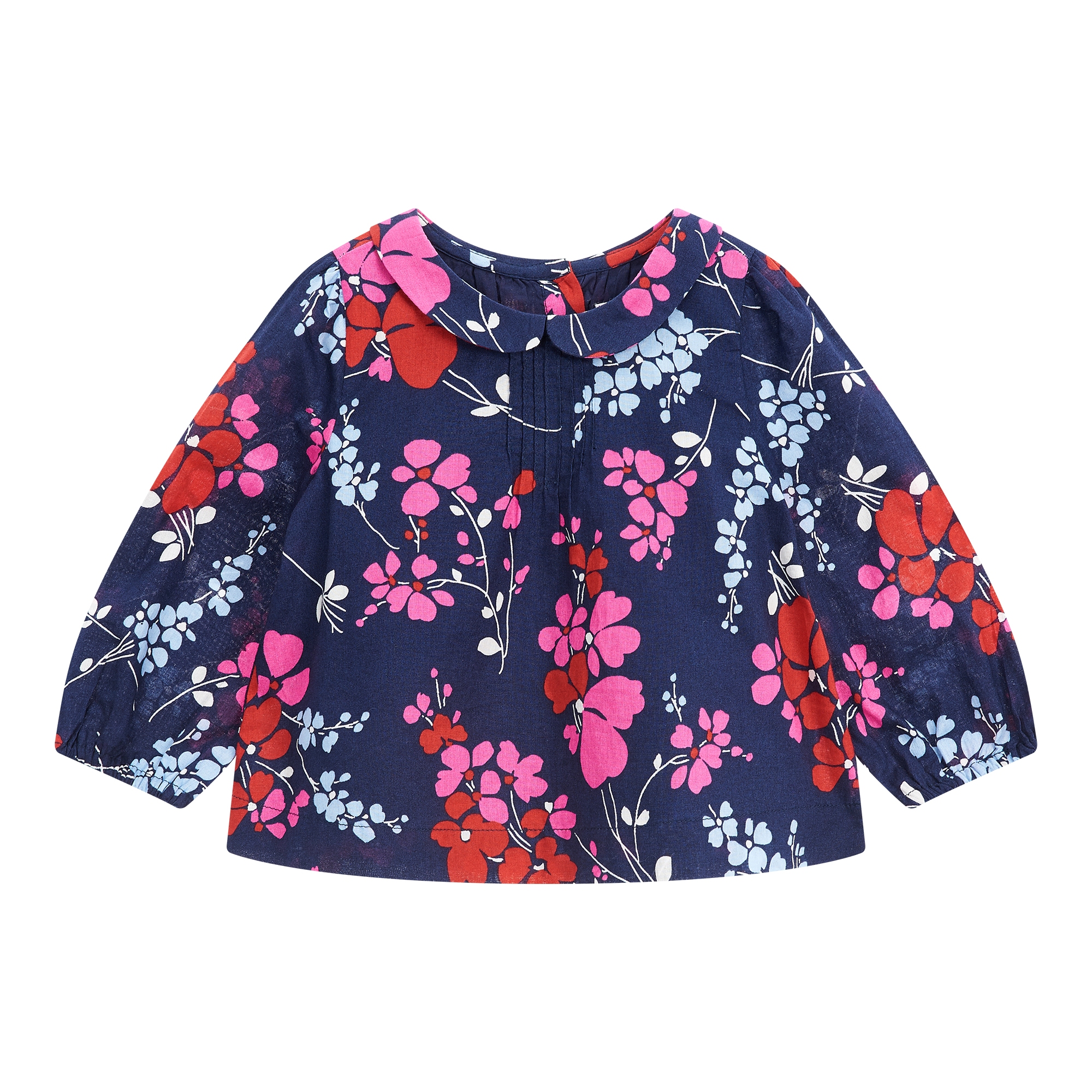 디자인 포인트:플로럴 패턴 디테일이 돋보이는 페미닌한 무드의 블라우스둥근 카라 디테일로 러블리함을 더한 디자인면 소재로 부담없이 스타일링 하기 좋은 포인트 아이템