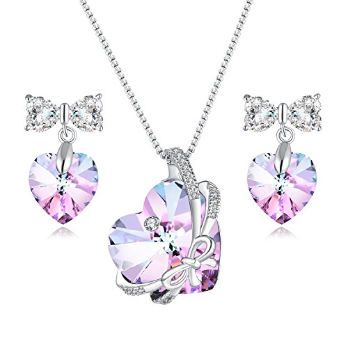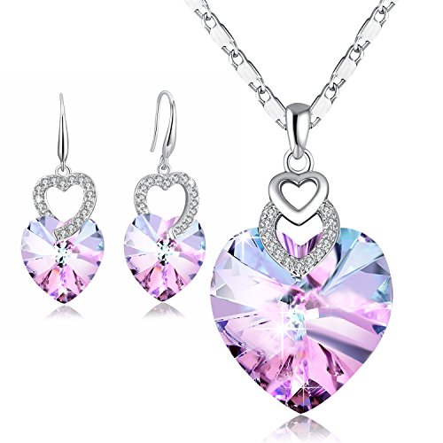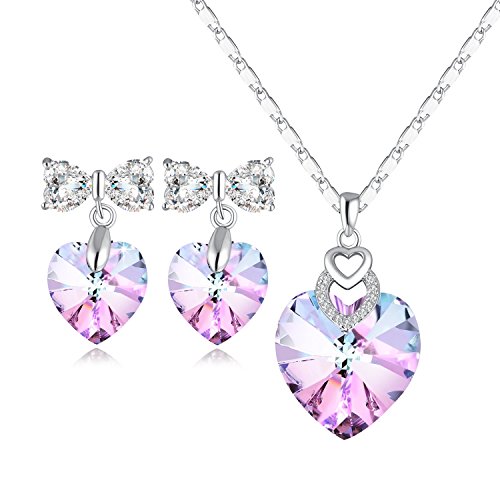 Necklace Weight: 0.24 ounce, Height: 0.98 inch, Width: 0.69 inch. Earring Weight: 0.11 oz, Height: 0.75 in, Width:0.43 in Color:Purple and Pink. HIGH-QUALITY: Earrings Set is Made with 925 Sterling Silver & SWAROVSKI ELEMENTS Crystals, Necklace is Made with Rhodium Plated Alloy & SWAROVSKI ELEMENTS Crystals (Crystals are from Swarovski which Made With Genuine Swarovski that Import From Austria. It Ensure the Products Most Shine and Charm.)