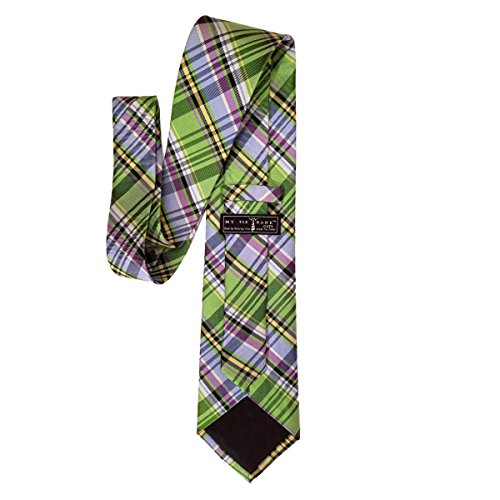 (My Tie Bank)/Accessories/Ties/DIRECT FROM USA/Greenbriar Green Plaid Check 100% Silk 2.5 Inch Skinny Tie