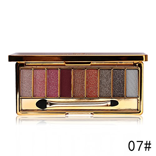 Features: Feel light and soft easily create clear and brilliant eye makeup finish. Highly pigmented and vibrant, the colors are extremely pretty and are very shimmery, easy to match your look! With primer lasted all day. Very sparkly and sexy. Not smudgy,easy to apply Product size (L x W x H): 3.9 x 1.1 x 0.8 inch Package List: 1X 9 Colour Eyeshadow PaletteFeature