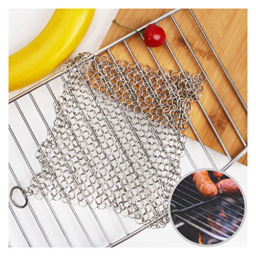-. Feature : ★Easy to use- This stainless steel Cast Iron cleaner helps to clean all of your cast iron products without stripping away accumulated flavor and seasoning or scratching your pans. Just see the magic change of our cast iron cleaner work wonders and make cleaning a breeze through. Scrub any residue with warm water which will release quickly and easily. / ★Durable Design- This cast iron skillet cleaner is handcrafted by Premium 316L Stainless steel. Each chainmail ring is meticulously handcrafted with the highest quality food grade stainless steel in the industry. / ★Multifunctional- Treasured by chefs as a cast iron cleaner & scraper for pans, skillet, griddle, and etc. Suitable for all kinds of cast iron pans. / ★Dishwasher Safe- It is easy to store and easy to clean. This durable, chainmail scrubber is dishwasher safe, which makes for hassle free sanitization while keeping you and your family safe from germs. / ★100% Satisfaction Guaranteed- You can see the effect. 100% Satisfaction Guaranteed! We Promise you'll love it!
