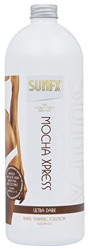 SunFX Mocha Xpress is the ultimate Rapid Tan- producing a warm rich natural looking DARK tan. Our unique blend of ingredients allows you to control the desired depth of color by time activation. Making it suitable for all skin types.