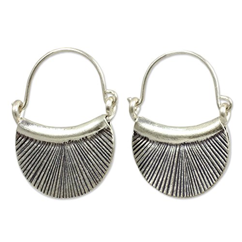 About this item: From Wadarat Supasirisuk, these earrings adapt Karen hill tribe silver techniques to modern fashion. The textured hoops evoke stylized fans. .950 fine silver with an oxidized finish. Earrings measure 1" x .9".