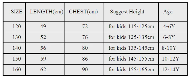 SizeLengthBust*2Suggest AgesSize number