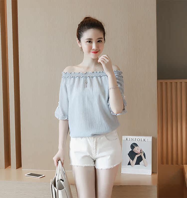 Korean Style Off Shoulder, Lace and Chiffon Top Collection 77