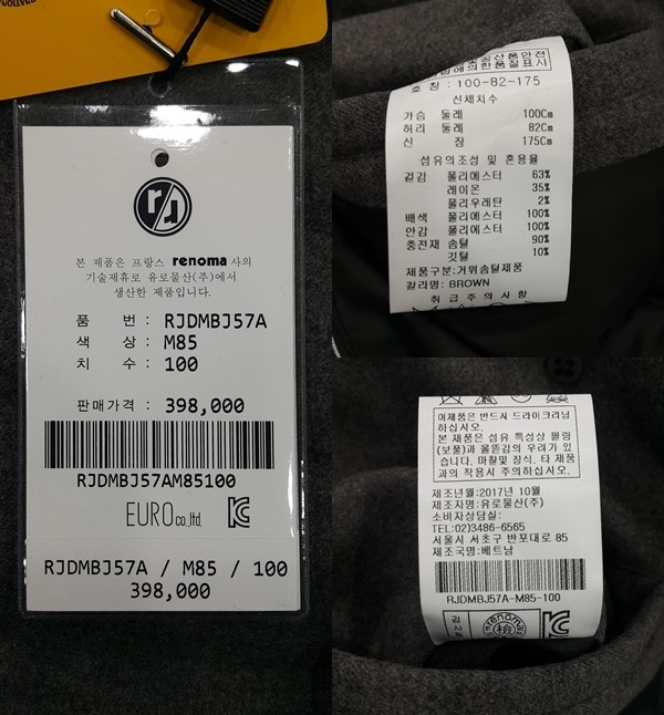 겉감 폴리에스터 63% 레이온 35% 폴리우레탄 2%