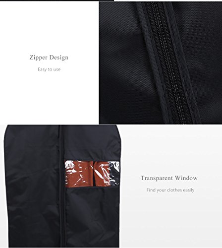 -. Feature : TOP QUALITY: Oxford garment bag covers with sturdy zip and edges to last a longtime. / BREATHABLE: Breathable garment bag made from oxford material that is thick, yet lightweight and breathable,can keep clothes fresh, clean, airy and protected from dust, mold. / EASY TO USE. By looking through the plastic window on the front,you can clealy see what's inside. One glance and you know if its your skirt, blouse, dance costume, evening dress, coat or uniform. / HOME AND TRAVEL - Light & portable for hanging in the closet or pack in lage, folding carry-on; No more hassles getting through airport security while travelling; Simple, hangs easily. / DESIGN:Washable and foldable design, easy to clean and store