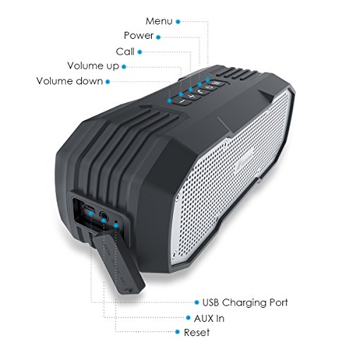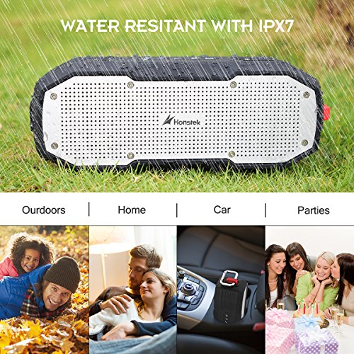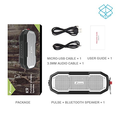 Lautsprecher fur Outdoor: Mit seinem Wasserdicht, Staubdicht IPX7, Metall und Silikon-Gehause-Design und portablem Haken ist Honstek K9 Lautsprecher perfekt geeignet fur Outdoor, z.B. am Pool, Strand