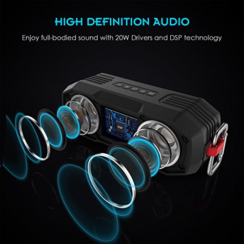 Honstek K9 Portable Bluetooth Lautsprecher Kabelloser Bluetooth Box mit 20W Lautsprecher, Super Bass, Wasserdicht IPX7, 30 Stunden Standby-Zeit fur Strand, Fahrradfahren, Klettern,