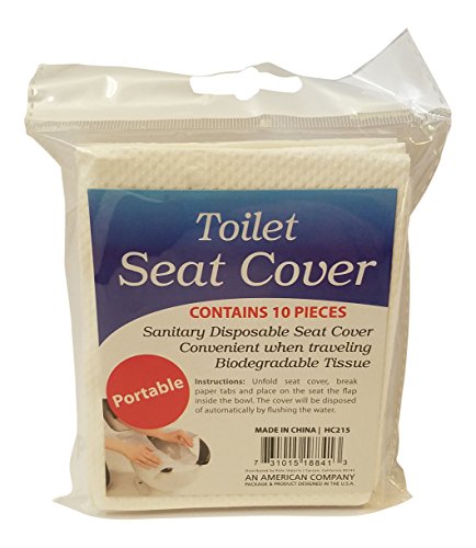 - 10 pcs of Disposable Toilet Seat Covers made of biodegradable tissue and packaged in a poly bag.