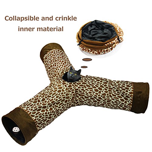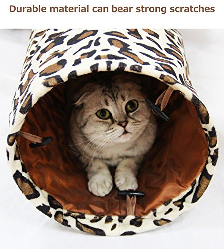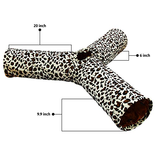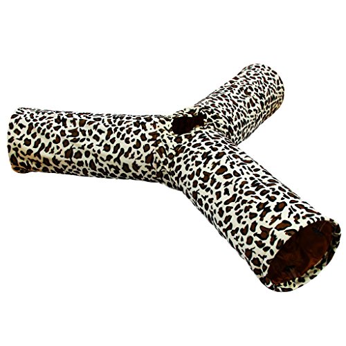 Cat Tunnel 3 W Leopard Crinkle Kitten Play Toy, Collapsible for Small Medium and Large Cats