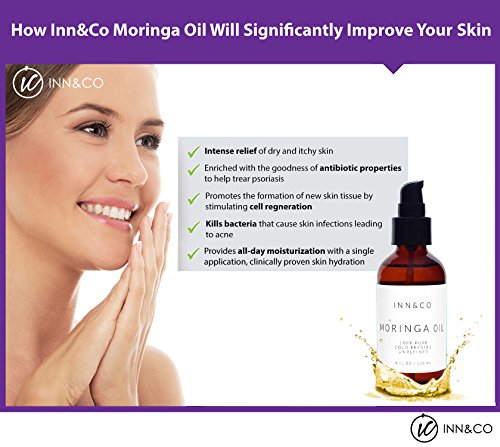 Moringa Oil Skin Benefits: 1. Dry skin - Softens dry skin and maintains moisture.