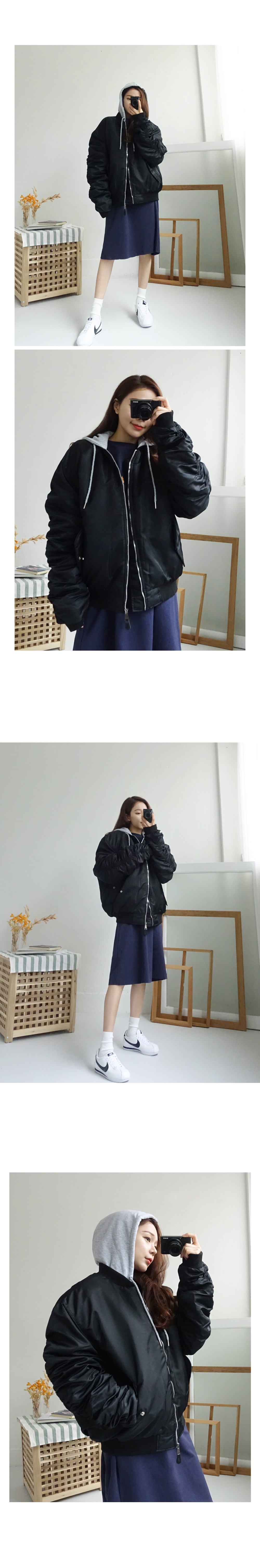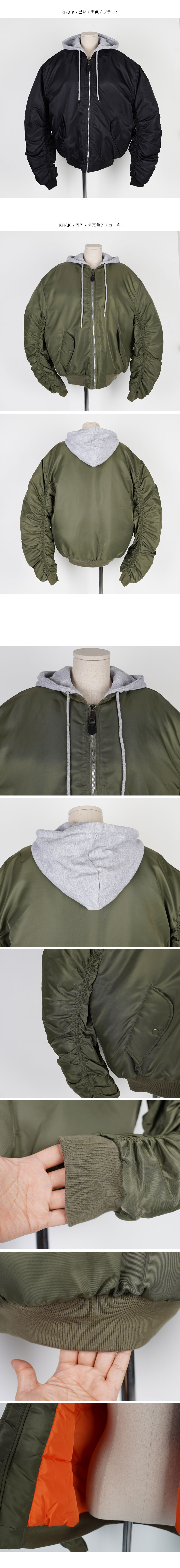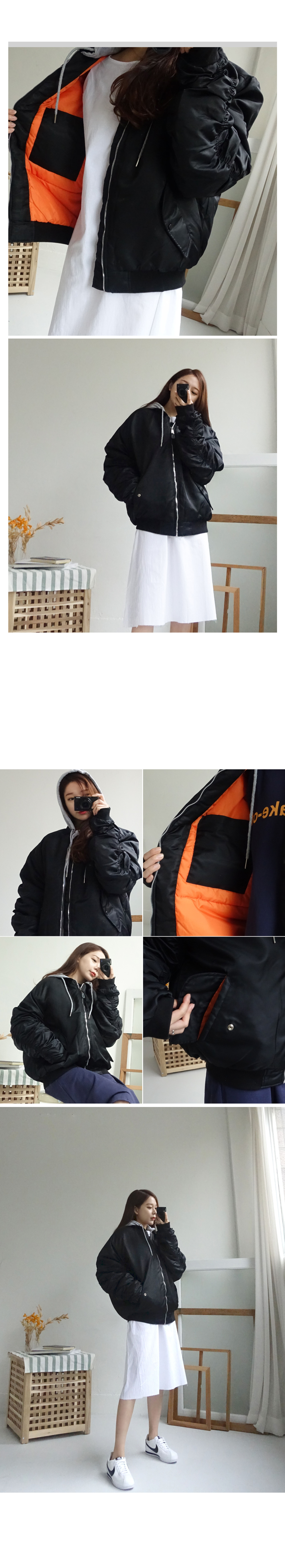 도톰한 패딩 항공점퍼로 겨울까지 쭈욱 즐기기 좋구요 후드를 더해주어 실용성까지 신경써서 제작되었습니다! 모델언니처럼 무심하게 툭 걸쳐 입어도 스타일리쉬한 매력이 느껴지는 아이템이에요^^