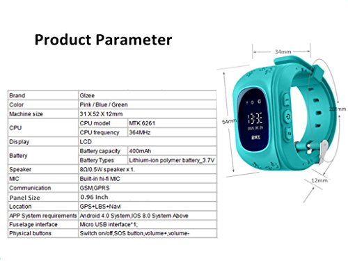 - Title : Glzee Real GPS Tracker Kids Smartwatch Wrist Watch Anti-lost SOS Remote Monitor Mobile Phone Alarm Mini Child Bracelet for Children Safety, Compatible with IOS Android Smartphone (Blue)