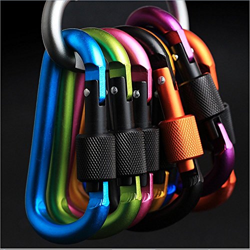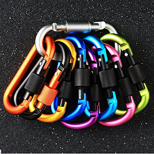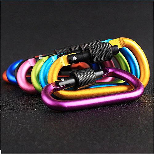 M-W 5PCS Aluminum Alloy D-Ring Shape Buckle, Super-handy Spring Snap Key Chain Clip Hook Screw Lock Buckle, Idea for Outdoor Use (Mix colour)