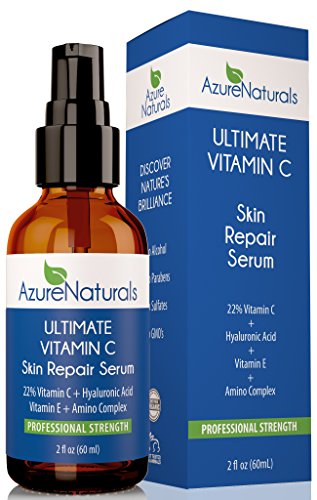 -. Binding : Misc. -. Brand : Azure Naturals -. Feature : ONE YEAR MONEY BACK GUARANTEE: We are so confident that we have created the best Natural and Organic skin care products available we back all of our products by a 365-day, 100% Hassle-Free, Money Back Guarantee. If you don't absolutely love any of our products we will give you a full refund, including shipping as long as you purchase from Azure Naturals on Amazon! / HOW DO YOU RECEIVE OPTIMAL RESULTS? Just like exercise, it is very important to use your skin care products consistently. VITAMIN C serum can be applied twice per day in the morning and at night. If you only use the serum once do so in the morning. Vitamin C serum will help protect you against future sun damage and other environmental stressors, but it is definitely not a substitute for sun screen! Your skin's texture should start to improve with the first application, but give your skin at least 30 days of consistent use to see the optimal results. / BUY WITH CONFIDENCE! Made in the USA With The Highest Quality Natural and Organic Ingredients Available: 98% Natural, 72% Organic. Contains No Alcohol, No Parabens, Gluten Free, Plant Based, No GMO's, Cruelty Free and Never Tested On Animals! Key Ingredients: 22% Vitamin C + 11% Hyaluronic Acid + 1% Vitamin E + 1% Ferulic Acid. Also contains Organic Aloe + Advanced Amino Complex + Organic Jojoba Oil. Due to the nature of using predominantly organic ingredients, there can be variations in color, viscosity, and scent from batch to batch. / VITAMIN C WORKS! Our serum dramatically boosts the production of collagen, which increases your skin's rate of cellular renewal. Improved cellular turnover refines your skin's texture, while visibly plumping and firming your skin. With consistent use this will start to minimize fine lines and wrinkles. Our serum is also perfect for sun damaged skin. We have combined three of the most powerful anti-oxidants available into one serum! Vitamin C, Ferulic Acid, and Vitamin E when combined can provide up to eight-fold antioxidant protection, a 96% reduction of sunburn cells, and prevent the formation of new free radicals in sun exposed skin. This will fade age spots and dramatically improve discoloration leaving your skin with a youthful glow! / WHY AZURE NATURALS? Our ULTIMATE VITAMIN C is 100% guaranteed to be the fastest working and most effective Vitamin C Serum on the market today. Compare our ingredients to similar product from Skinceuticals, Obagi, Cellex, and PerriconeMD. Not only will you find we have superior organic and natural ingredients, but our Vitamin C serum is $80 to $130 less expensive per bottle! More expensive does not mean it works any better! If you don't care about wasting money, you should still buy our product because it works better! You can always donate the $100 you save to charity! -. Label : Azure Naturals -. Manufacturer : Azure Naturals -. Model : ULTIMATE VITAMIN C -. NumberOfItems : 8000 -. PackageQuantity : 1 -. ProductGroup : Beauty -. ProductTypeName : BEAUTY -. Publisher : Azure Naturals -. Studio : Azure Naturals -. Title : 22% VITAMIN C GUARANTEED FASTEST WORKING Vitamin C Serum 22% C + Hyaluronic + 1% Vitamin E + 1% Ferulic, also Contains Organic Aloe & Jojoba Oil + Advanced Amino Complex, Deeply Penetrates Skin to Repair Sun Damage, Reduce Fine Lines & Wrinkles, Azure Naturals Guarantees Our ULTIMATE VITAMIN C Serum Will Leave Your Skin With a Beautiful, Radiant, and More Youthful Looking Glow! Try Risk Free Today, One Year Unlimited Money Back Guarantee!