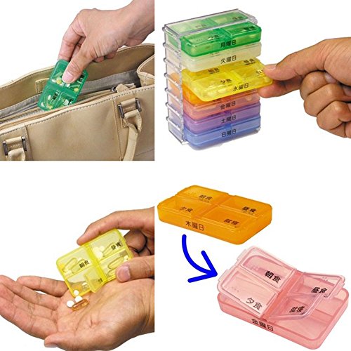 Studio : Gentle Meow Publisher : Gentle Meow Binding : Kitchen Product Description Ships from Hong Kong. Daily Pill Organizer, Sorter Box Keeps your daily pills neatly stored, organized, and ready when needed. The Organizer has 7 compartment and compartment is Color Coded with the Day printed on the outside, for extra ease and convenience. These compartments are stored like pull out drawers from their holder, just like a filing cabinet. Each compartment has four segments each printed with the words Breakfast, Lunch,Dinner, and Bed time, making it extra simple and easy so you never forget to take your medication again. The sorted segments let you know which one to take and when to take. Package includes: 1 x Pill Organizer. 0