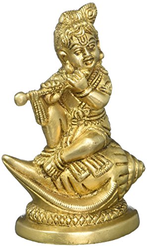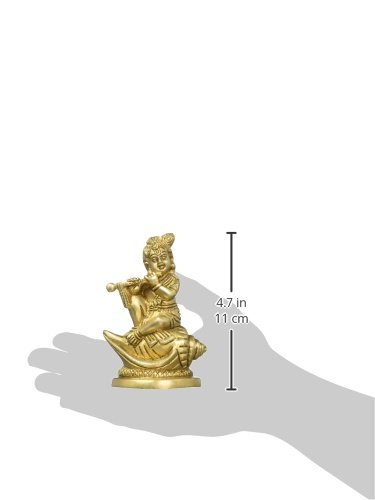 Brass Statue Of Baby Krishna Sitting On Conch Shell Playing Flute 4.5 Inch Weight-580 Grams