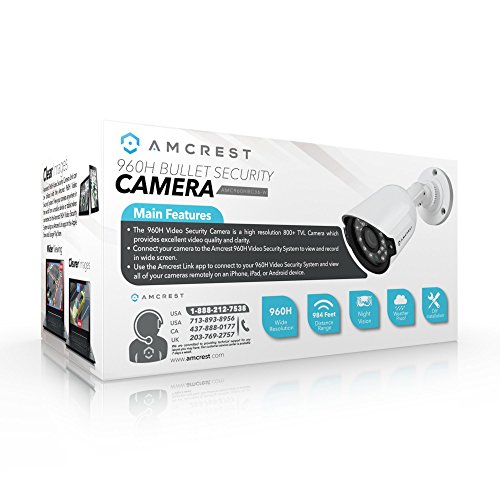 Amcrest AMC960HBC36-W 800+ TVL Bullet Weatherproof IP66 Camera with 65' IR LED Night Vision (White),Power supply and coaxial video cable are not included
