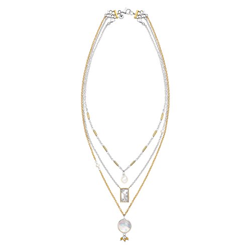 A mix of materials, such as pearl, mother of pearl, and Swarovski crystals, totaling 11 7/8 ct, and brass and sterling silver metals come together to create the convertible Charisma Necklace, ensuring that there's a style for your every mood and outfit. Wear it seven ways! The rolo-style chain measures 17 inches in length and is finished with a lobster clasp. Piece comes with a ".925" sterling silver stamp as a symbol of guaranteed product quality.