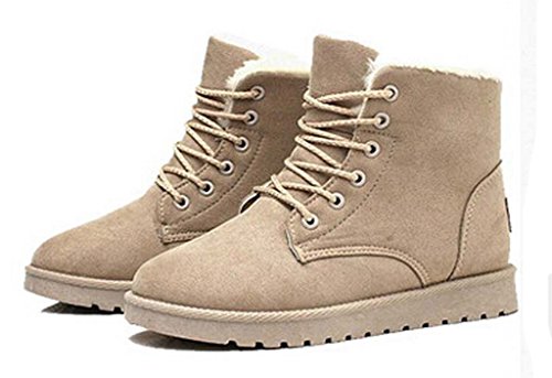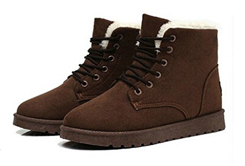 (Double Plus Open)/Women's/Boat Shoes/DIRECT FROM USA/DPO Women's Suede Shearling Mid Calf Lace up Warm Winter Snow Boot