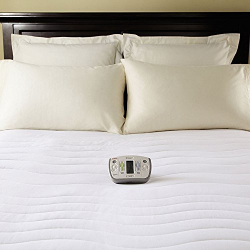 -. Feature : Sunbeam Therapeutic Heated Mattress Pad / Designed to provide targeted, low-level heat therapy to neck and shoulders, youre guaranteed to wake up rested and feeling better / It provides comfort with premium soft quilting and gently wraps you in warmth / Designed to fit queen-sized beds / Six heat zones for focused relief Uses patented ThermoFine technology 10 heat settings & 10-hour auto-off feature 100% cotton top with 100% polyester fill Machine washable & dryer safe White
