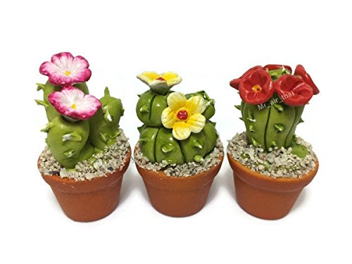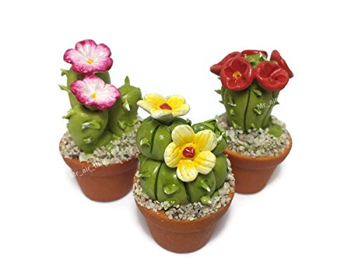 Product Description It is a miniature Cactus Flower. It made from special Clay from Thailand. It look like the real Cactus flower. Very cute :) You should put it in the fairy Garden. Some time you should give some one as a valuable gift :) One set have 3 cactus 0