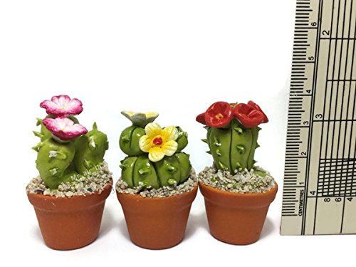 (Mr_air_thai_Miniature Cactus and Flower)/Dolls/Accessories/DIRECT FROM USA/3pc Miniature Cactus Flower Trees Dollhouse Fairy Garden Mini Plant Ceramic Paint Furniture Tin...