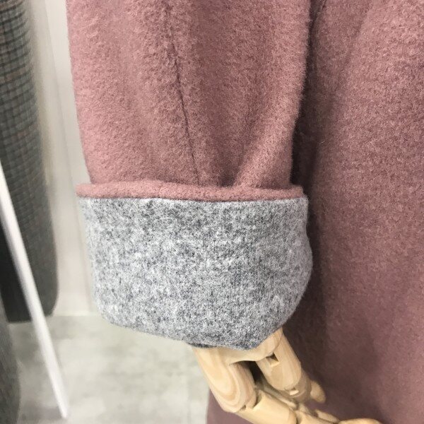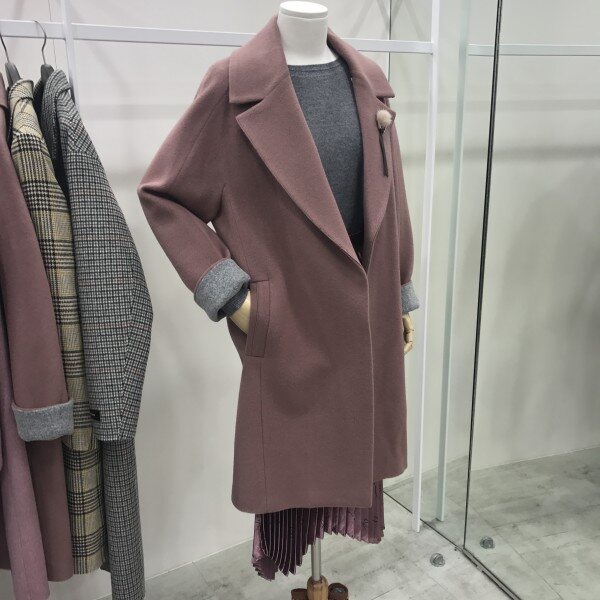 모 88% 나일론 12%의 혼방으로 바람막이 기능도 약간 포함 되어있어 따뜻하면서도 가볍게 착장하실 수 있는 아이템.겨울핑크라 무드있고 여성스럽게 즐기실 수 있으며 소매와 옷깃부분 회색으로 배색처리되어 있어 따뜻한 포인트를 더했습니다.