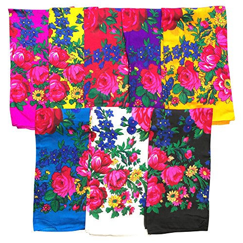 Acrylic Square Tichel Japanese Floral Vintage Hairwrap Headwear Scarves