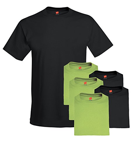 Hanes Men's 6-Pack Crew T-Shirt, 3 Black / 3 Lime, X-Large