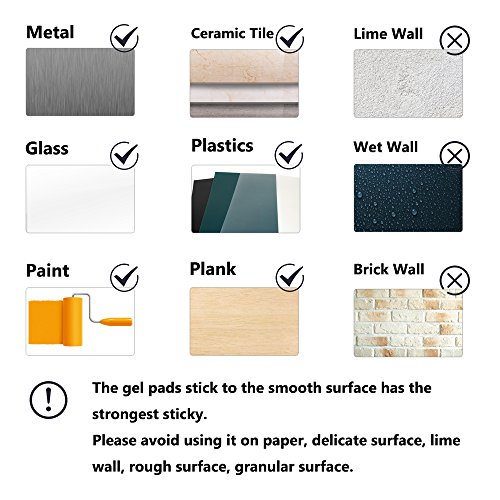- Multi usage: Ideal for home use and travelling. Can be applied to your car, kitchen, toilet, cupboard, desk and many other smooth surface, such as the surfaces of glass, mirrors, whiteboards, metal to hold things like remote control, camera, phone, keys, mirror, pad and so on.