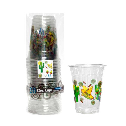 Party Essentials Soft Plastic Printed Party Cups, 12-Ounce, Fiesta, 20-Count