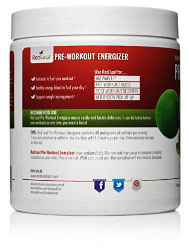 Red Leaf Pre-Workout supplement gives you workout nutrition plus a healthy energy blend. All in one convenient drink that mixes easy and tastes delicious. A milder, healthier pre-workout powder for women and men.