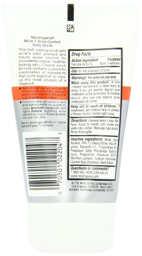 Neutrogena All-In-1 Acne Control Daily Scrub, Acne Treatment 4.2 Fl. Oz. (Pack of 3)
