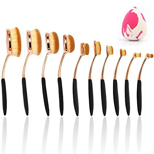 Gorgeous ROSE GOLD brush with the latest fashionable TOOTHBRUSH design and 1 beauty blender