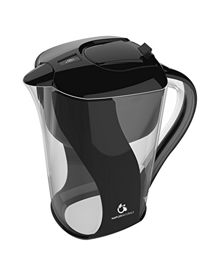 Newly designed filter cartridge to minimize the chances of clogging. Drink fresh clean great tasting water with the BPA FREE Naples Naturals 10 cup water filter pitcher. Sits right on your counter or in your refrigerator and is the perfect way to provide great tasting water. Features digital electronic filter life readout lets you know when it's time to change your filter. Newly designed screw in filter protects water better than the old drop in filter designs BPA free plastic easy fill convenient 10 cup capacity filter life the filter should be changed every 70 gallons or roughly 45-60 days depending on water usage directions rinse the filter under cold water for about 30 seconds. Gently Tap the filter on the counter (both sides) to ensure the media is proportioned nicely. Remove the water reservoir and screw the filter into the bottom of the reservoir and replace the assembly back into the pitcher. Fill and discard 2-5 pitchers or until the water is clear and there are no more Charcoal particles in the pitcher water. Fill and enjoy! the filter should be replaced every 70 gallons or when the filter replacement indicator signals a changed is needed. Do not use with hot water.Feature