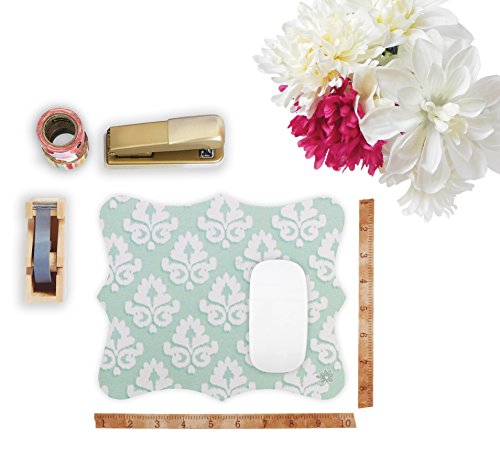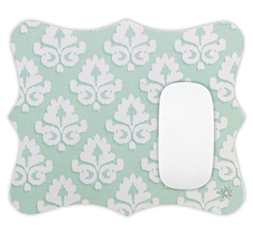 bloom daily planners Mouse Pad (+) 8" x 9" Uniquely Shaped Mouse Pad (+) Custom Cut Optical Friendly Mouse Pad - Mint Damask Design