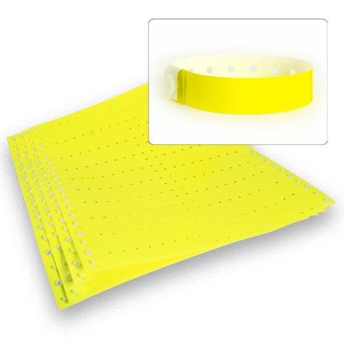 -. Feature : Comfortable & Light Weight / Secure, one time use, locking plastic snaps / Waterproof / Excellent for extended wear / 500 Wristbands in Sheets of 20.