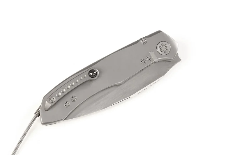 상품 내용 총 길이: 218 미리메터 블레이드 길이: 95 미리메터 핸들 길이: 123 미리메터 블레이드 재질: S35VN 블레이드 두께: 4 미리메터 블레이드 폭: 35 미리메터 핸들 재질: TC4 티타늄 합금 포켓: 티타늄 + 세라믹 볼 처리 표면 처리: 미세 돌 세척 블레이드 표면: 손 새틴 그리기 경도: 59-60 HRC 구조/시스템: 모든 CNC 조각, 더블 행 볼 베어링/높은 경도 가스켓, CNC 조각 420C의 고강도 나사, 핸들 엔드 끈 구멍. 그물 무게: 150 그램 색상: 그레이 포장: 나일론 세트 ![]() ![]() ![]() ![]() ![]() ![]() ![]() ![]() ![]() ![]() 포장 상세