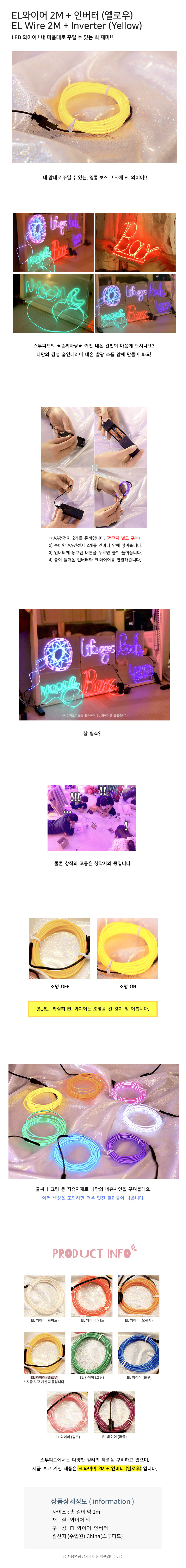 EL 와이어 2M + 인버터 (옐로우/라이트그린)