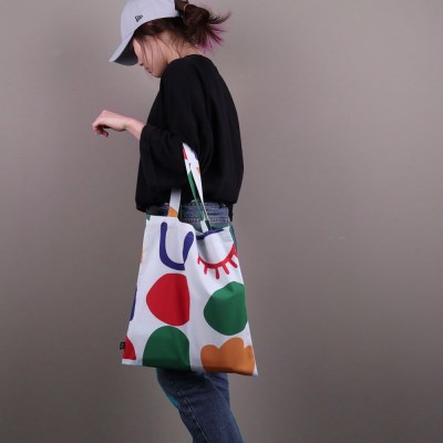 drpdrpdrp의 에코백 은 진정한 에코백의 기본으로부터 출발합니다. 가장 좋은 디자인이라 생각했기 때문이죠. 데일리 백으로 편하게 사용하면서도 어떤 패션스타일에도 잘 어울리며 원단은 면 100%의 20수 옥스퍼드 원단을 사용해 사이즈는 38x42cm 로 책, 노트, 다양한 소지품에서 남녀 모두 편하게 사용할 수 있으며, 디자인의 심플함과 패턴의 조화가 매력적인 매일 사용하면서 매일다른 느낌을 느껴보세요. PATTERN TITLE : LOOK AT ME 초록, 빨강, 주황, 파랑 등의 원색이 주는 컬러풀한 느낌과 단순한듯하지만 형태들의 조합이 재미있는 디자인으로, 눈을 감은 얼굴이 나를 향해 LOOK AT ME, 그래서 LOOK AT ME 패턴입니다. |