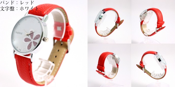 時計 腕時計 レディース バンド おしゃれ かわいい 花柄 シンプル レッド ホワイト