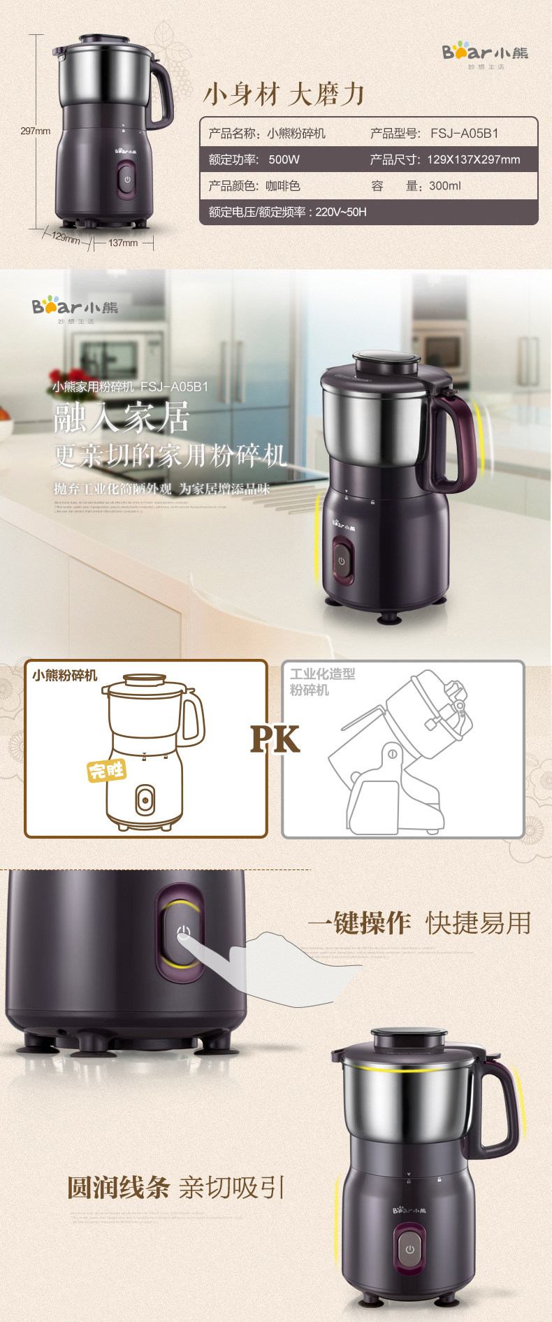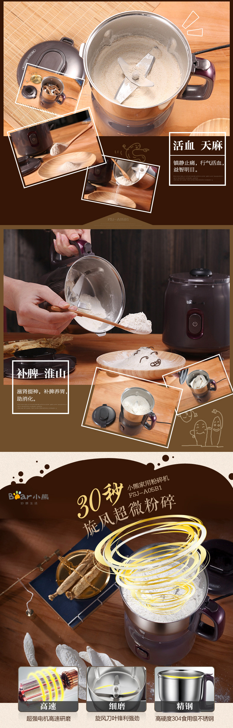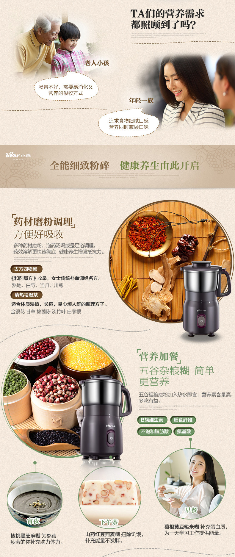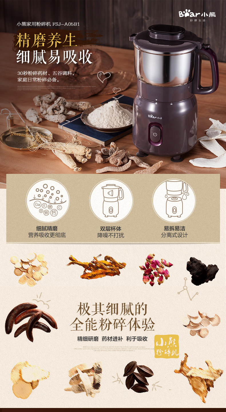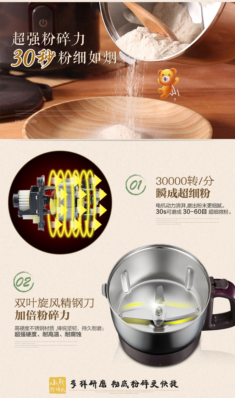 粉碎机家用超细磨粉机 小熊打粉机商用五谷杂粮小型小钢磨研磨机